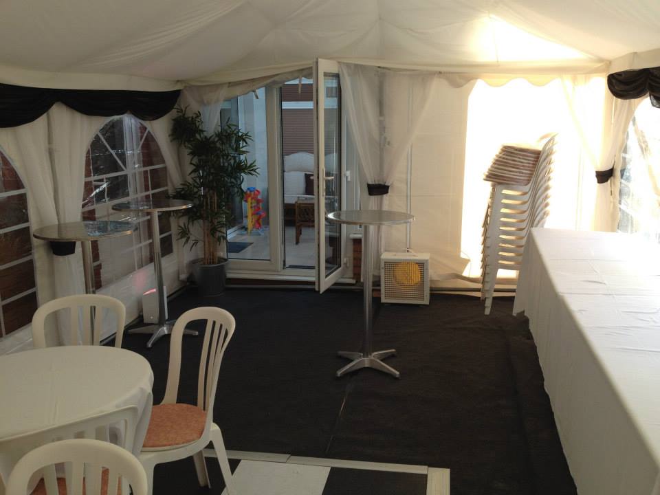 New Years Eve party extension to the house! We linked the Jigsaw 24 up to the customers conservatory. They had a small dance floor, music and of course a heater. The guests loved the marquee because it was so warm!